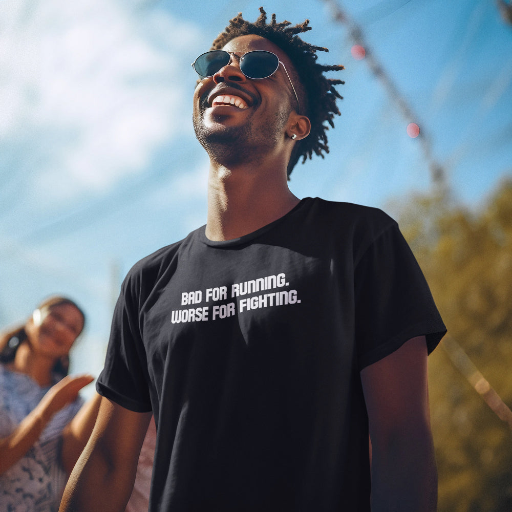 Speed’s overrated. The "Bad For Running. Worse For Fighting." Tee is built for those who know you don’t need to run when you’re ready to fight.